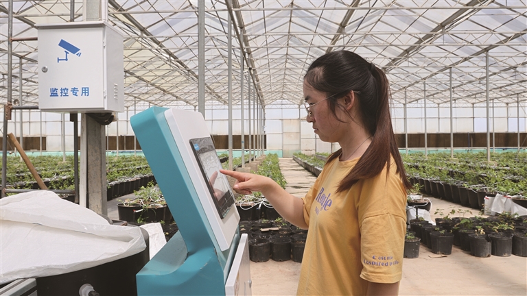 同样,在新疆玖运景致农林科技发展有限公司的生态温室里,管理人员使用智能物联系统监测平台查看土壤湿度、空气温度、光照等指数。经过操作,将按比例“量身定制”的水肥通过滴灌带输送至植物根部,有效控制给水的时间和总量,满足了植物生长需求。该公司技术员陈丽娜说:“我们基地的浆果种植全部使用智慧农业平台,实现智能化自动灌溉、施肥和种植管理,在全面提升种植作业效率的同时,实现了水、肥、工、产值的三降一升。”