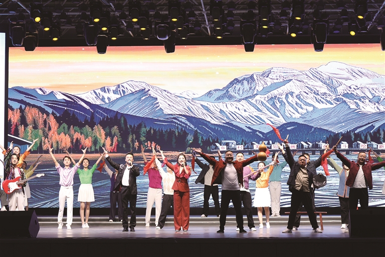 除了自治区精选的节目外,昌吉本地的特色节目也让观众眼前一亮。新疆曲子戏歌《风风火火曲子来》巧妙地将传统坐唱与现代韵律相融合,以欢腾的旋律勾勒出一幅幸福美好的生活画卷;昌吉市文化馆精心编排的皮影戏《满满的心意送亲人》,以援疆干部救治患病儿童的真人真事为背景,生动刻画了援疆干部“舍小家顾大家”的无私精神。
