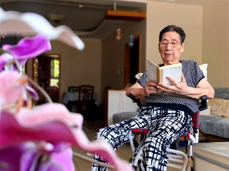 两年前,我不慎摔伤膝关节,行动不便,只能依靠轮椅出行。可即便如此,我依旧乐观积极。我已年届83岁高龄,国家给予我丰厚的退休金,生活无忧,吃穿不愁,每天都能感受到党和国家的关怀与温暖。