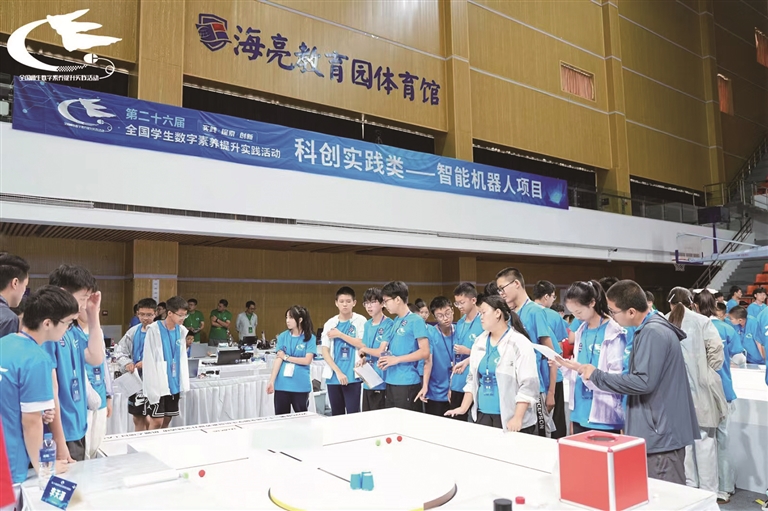 第二十六届全国学生数字素养提升实践活动中,呼图壁县中学生机器人团队在比赛现场参赛。□王永亮摄