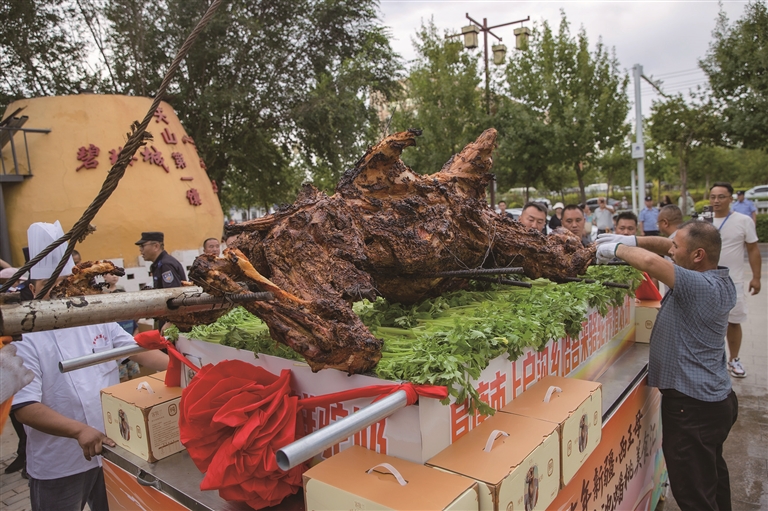 8月8日,新疆·西王母瑶池蟠桃会在阜康市举行。活动现场,烤骆驼新鲜出炉。□本报记者 巨海成摄