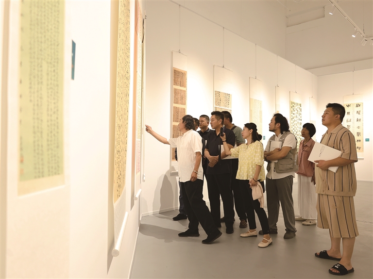 8月5日,“翰墨传薪·诗颂北庭”北庭雅集第八回书法作品展在昌吉州文联展厅开展,吸引书法爱好者前来观展。□本报记者 付小芳摄