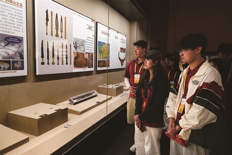 近日,参加“泉昌情·心连京·丝路缘——祖国情·中华行”赴新疆(昌吉)研学活动的华侨大学师生在丝绸之路北庭故城遗址博物馆参观。