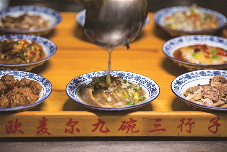 昌吉小吃街的九碗三行子色香味俱全。□本报记者 何 龙摄