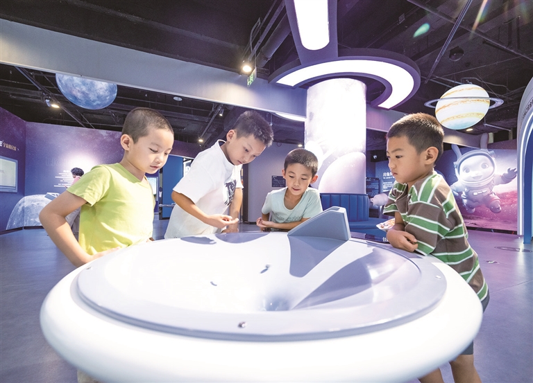 8月22日,昌吉科技馆,小朋友正在进行交互式体验。昌吉科技馆提升改造项目于2023年启动,并于今年7月揭牌焕新,正式开馆。焕新后的科技馆展厅建筑面积扩展至5399平方米,以“科技·梦想”为布展主题,精心打造四大主题展厅,共展出119件展品,构建出极具吸引力的沉浸式体验空间。 □本报记者 何 龙摄