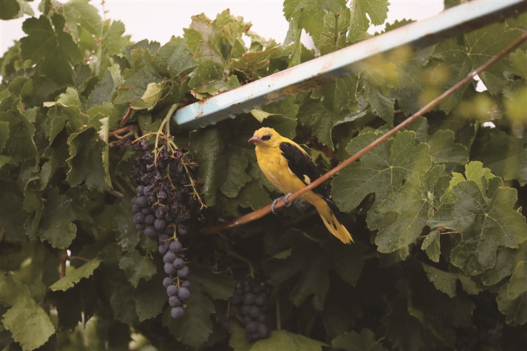 金黄鹂“光顾”村民家 爱吃葡萄成“网红”