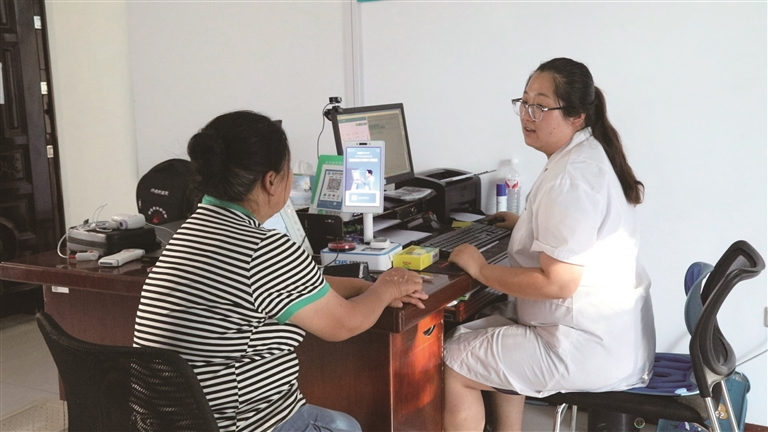 近日,在北庭镇古城村卫生室,医生在为患者提供一站式诊疗服务。□龚向前摄