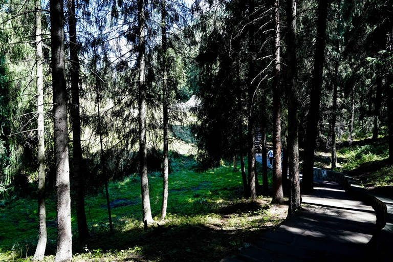 游览天山天池, 曲径通幽处,聆听鸟鸣声