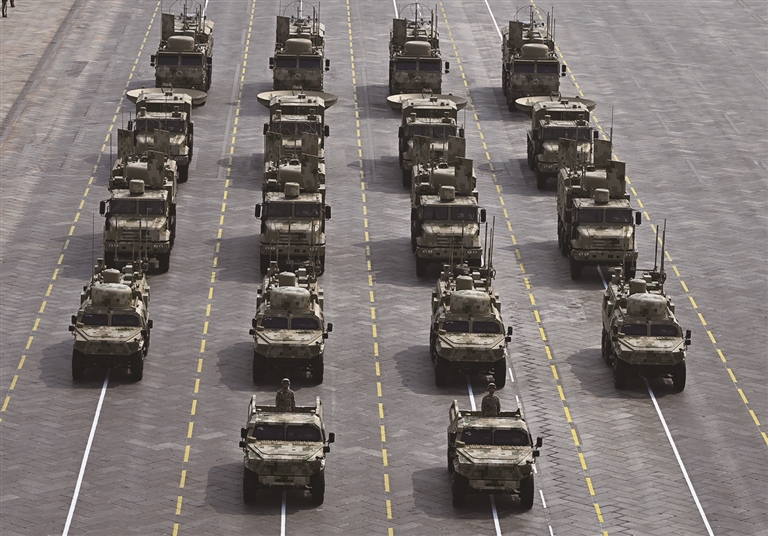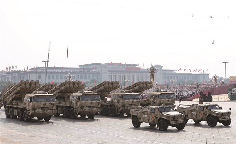 9月3日,纪念中国人民抗日战争暨世界反法西斯战争胜利80周年大会在北京隆重举行。这是远程火炮方队接受检阅。□新华社记者 陈 诚摄
