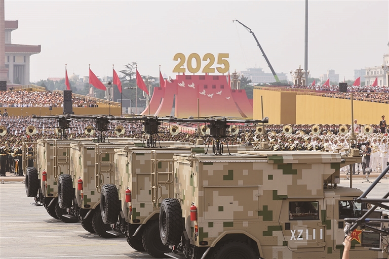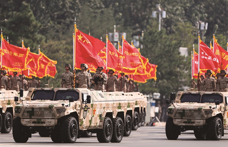 9月3日,纪念中国人民抗日战争暨世界反法西斯战争胜利80周年大会在北京隆重举行。这是信息支援方队接受检阅。