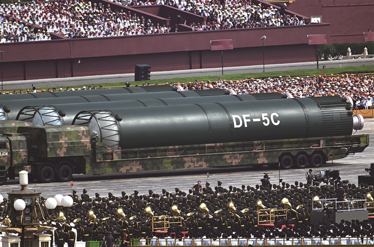 9月3日,纪念中国人民抗日战争暨世界反法西斯战争胜利80周年大会在北京隆重举行。这是核导弹第一方队接受检阅。□新华社记者 晋美多吉摄