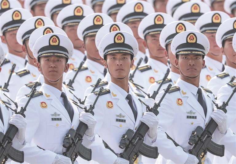 9月3日,纪念中国人民抗日战争暨世界反法西斯战争胜利80周年大会在北京隆重举行。这是海军方队接受检阅。