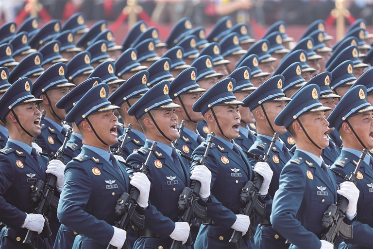 9月3日,纪念中国人民抗日战争暨世界反法西斯战争胜利80周年大会在北京隆重举行。这是空军方队接受检阅。