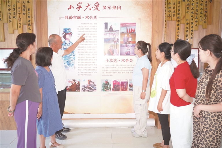 如今,这座家风家训馆每年接待参观者超万人次。不久前,适龄女青年白佳琪在馆中深受触动,主动找到木合买·买买提力咨询报考军校事宜。