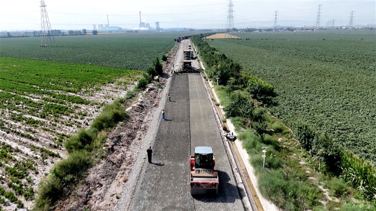 8月25日,在玛纳斯国家湿地公园环线道路建设施工现场,大型摊铺机正在进行水稳基层摊铺作业,三台压路机进行整平碾压,洒水车实施后续养护,整个施工过程有序推进。项目负责人张新荣说:“目前已完成全线路基涵洞工程,现阶段正进行路面基层施工,计划9月20日完成全部路面及交通安全附属设施建设。”