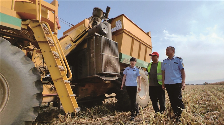 在“三秋”生产期间,昌吉州建立“日排查、周汇总、月通报”工作机制,每日安排执法人员开展田间巡查,还联合公安部门在乡镇主干道和农机作业集中区设卡管控,严防违规作业事故发生。