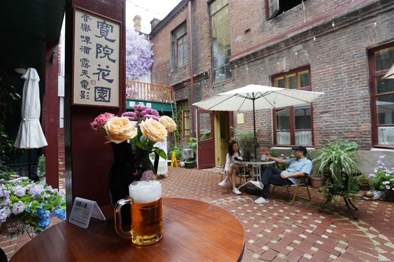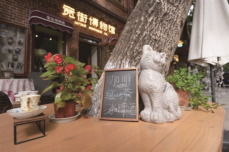 人们在位于哈尔滨市西十三道街的宽街博物馆后院小憩(9月3日摄)。