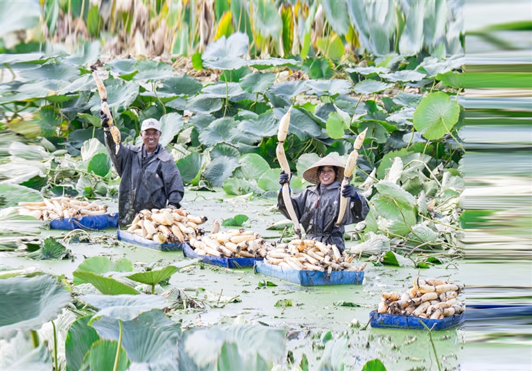 采收莲藕。
