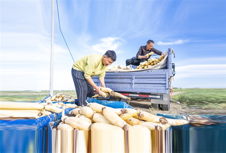 藕商地头收货。