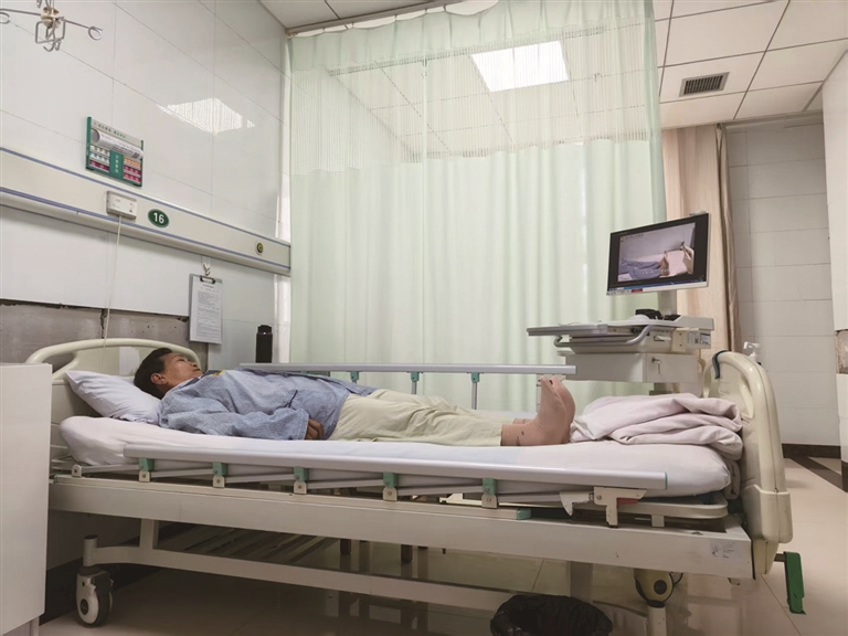 患者在病房跟随“移动护士工作站”做康复锻炼。□王美娟摄