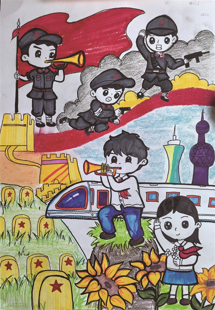 《革命薪火传 少年志向前》马克笔画