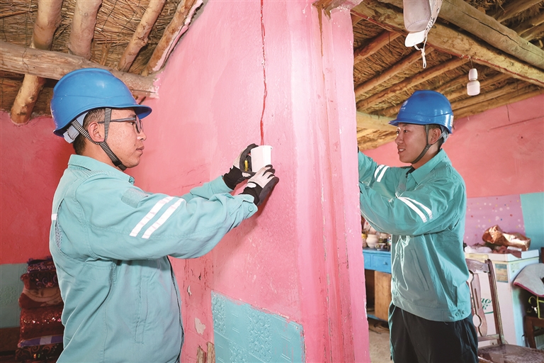 为深入推进“村网共建”电力便民服务示范点创建工作,国网吉木萨尔县供电公司党员服务队主动延伸乡村供电服务,图为电力工人给吉木萨尔县庆阳湖乡大东沟村牧民哈都完·哈不都拉家更换插座、开关、灯泡底座等。□张鑫源摄