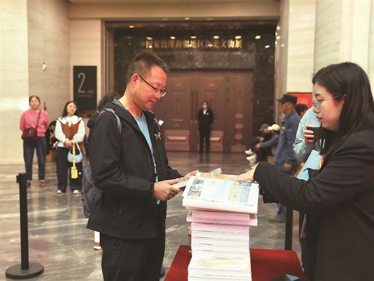 9月26日,读者在《什么是新疆》新书首发式现场了解书籍内容。