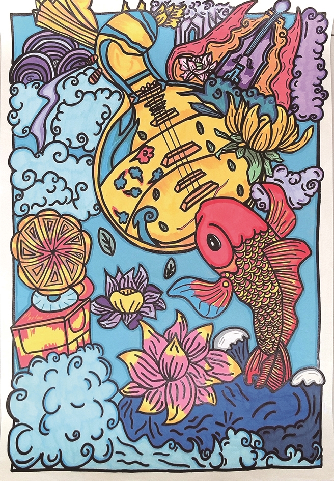 《乐韵鱼欢·盛世繁花》马克笔画