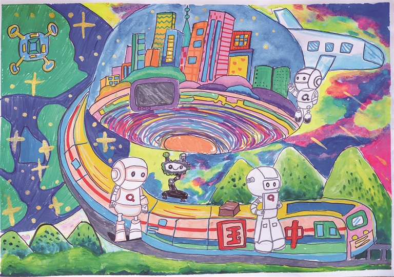 《与科技共绘未来》马克笔画