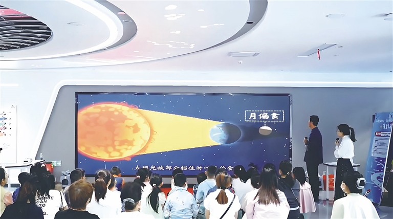 近日,昌吉科技馆,小朋友在家长的陪伴下学习天体知识。□白 珂摄