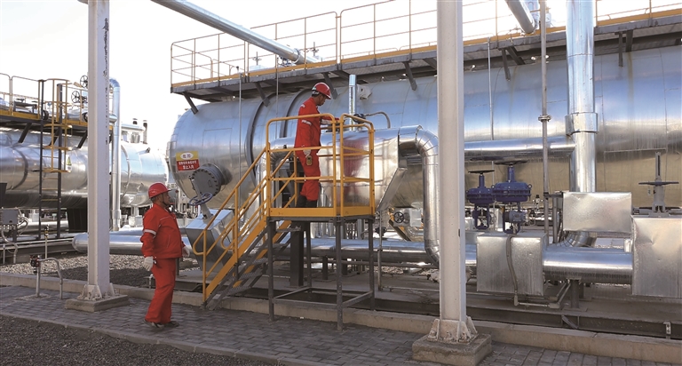 近日,新疆油田吉庆油田作业区工作人员正在巡检。□杨天文摄