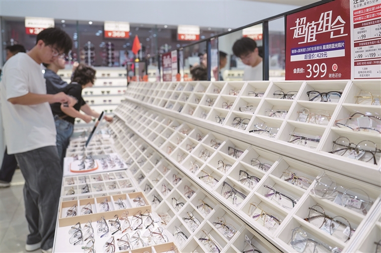 人们在中国丹阳国际眼镜城内选购眼镜(10月2日摄)。□新华社发(罗玲 摄)