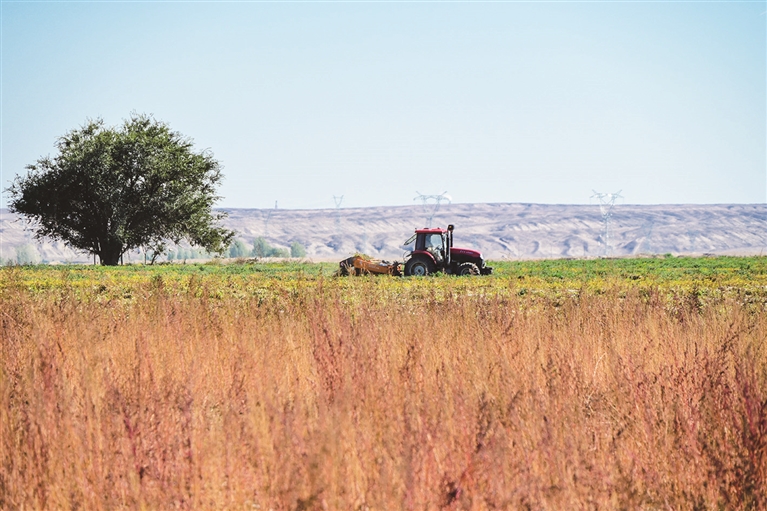 10月17日,呼图壁县大丰镇联丰村的花生种植基地,农机手驾驶拖拉机在田间采收花生。今年,该县在大丰镇联丰村试种500亩花生,目前顺利收获,标志着当地特色农业发展迈出重要一步。 近年来,呼图壁县通过引进智能化农机设备与高产品种,结合北斗导航精准播种技术,推动花生规模化种植,不断拓宽农民增收渠道,为乡村振兴注入新动能。 □本报记者 陶维明摄