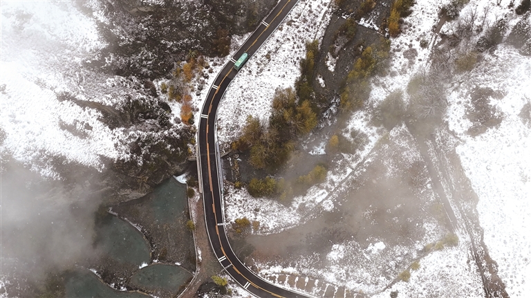 阜康市天山天池景区,“冬韵秋景”同框,成为秋日里一道别样的风景线。□苑宝录摄