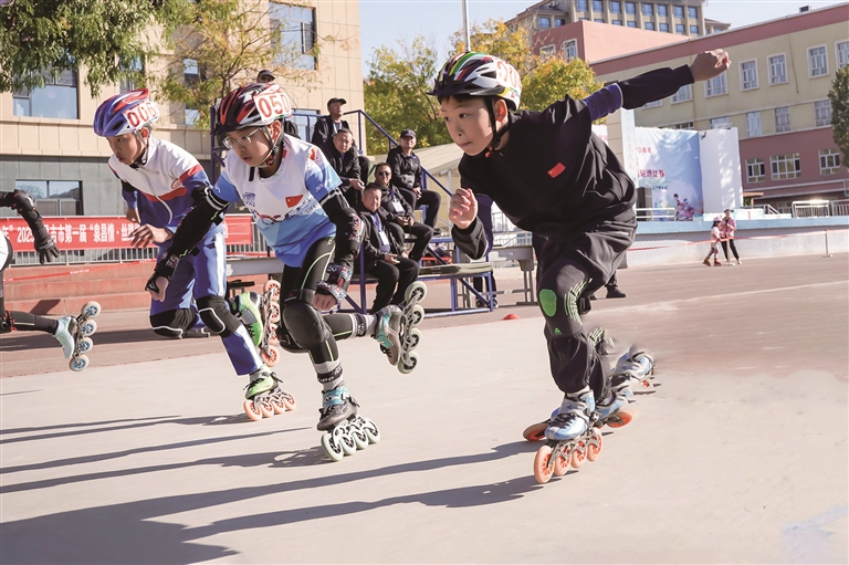 近日,“奔跑吧·少年”2025年昌吉市“泉昌情·丝路缘”第一届中小学校园轮滑赛在昌吉市第七小学轮滑场举行。来自全市各中小学代表队的120余名选手参赛,化身“小飞侠”穿梭在赛道上,上演“速度与激情”,争夺各竞赛项目奖项。□杨 斌摄