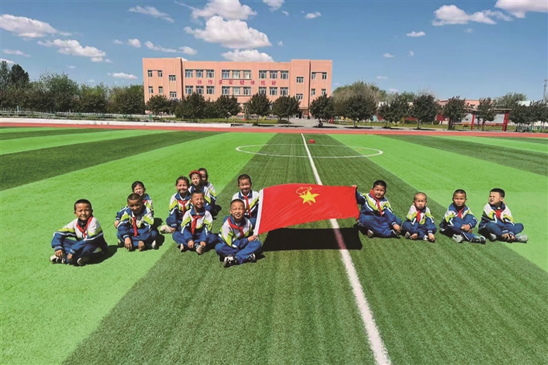 9月15日,大南沟乌孜别克族乡中心学校学生在新修建的体育运动场开展活动。□杨 瑞摄