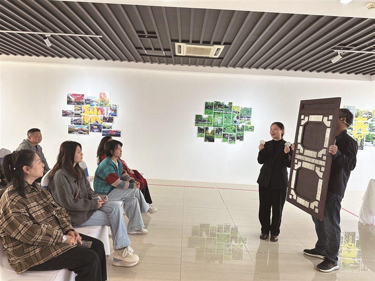 10月23日,工作人员向观展群众介绍明瓦窗。
