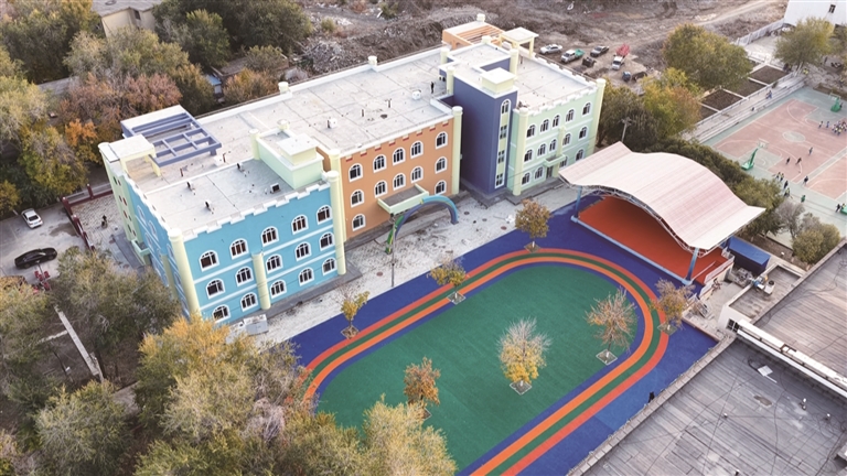 在玛纳斯县幼儿园教学楼建设现场,一座崭新的教学楼已拔地而起。该楼建筑面积4500平方米,外墙色彩明快,配套的活动场地和绿化等附属设施都已完工,目前正等待竣工验收。项目总投资2500万元,建成后将新增多个标准化教室、活动室和功能室,有效缓解周边区域幼儿入园难问题,为学龄前儿童提供更优质的学习与生活空间。玛纳斯县第一幼教集团专职副书记秦丽娟说:“新教学楼配备了专业活动室,实现了教学区、活动区、生活区的科学分区,能更好地满足孩子们个性化发展需求。”