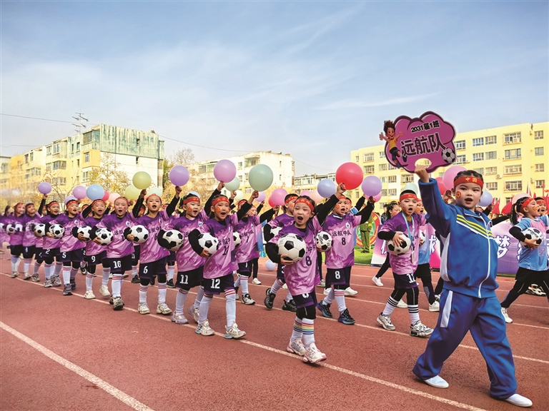 本报讯 记者米桃乐报道:10月22日,昌吉市第十小学的绿茵场上人声鼎沸,激情四射,“人和杯”校园足球班级超级联赛暨“校园足球+X”项目式主题实践活动在此举行。