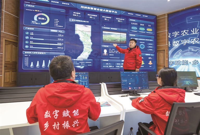 6月3日,玛纳斯县国家数字种植业创新应用基地,工作人员通过动态监测管理体系实时监测棉田的各类数据,为种植户提供精准的智慧田管方案。