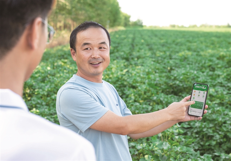 8月3日,呼图壁县大丰镇红柳塘村,种植户借助智能水肥一体化设备,通过手机操作完成棉花的浇水与施肥工作。