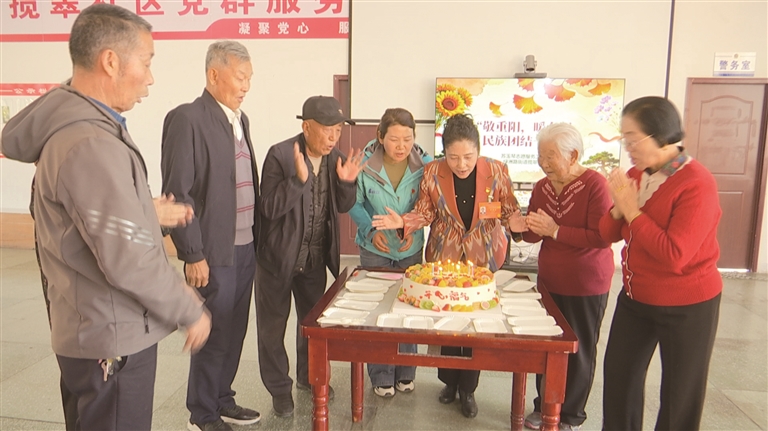 本报讯 通讯员成石麟报道:10月28日,昌吉市绿洲路街道揽翠社区携手苏玉琴志愿服务工作站邀请社区高龄老人、空巢老人代表开展“敬重阳 暖夕阳 民族团结一家亲”活动。