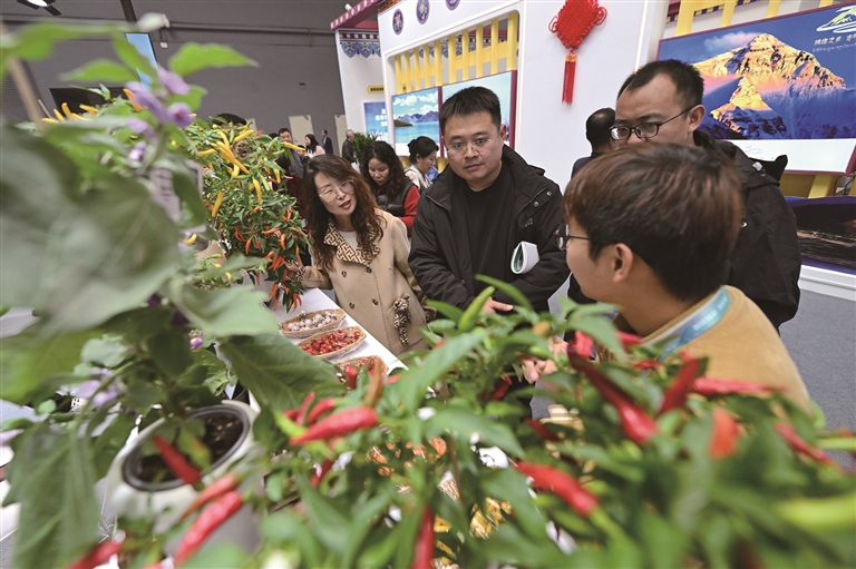 下图:10月25日,参观者在杨凌农高会上了解盆栽蔬菜。