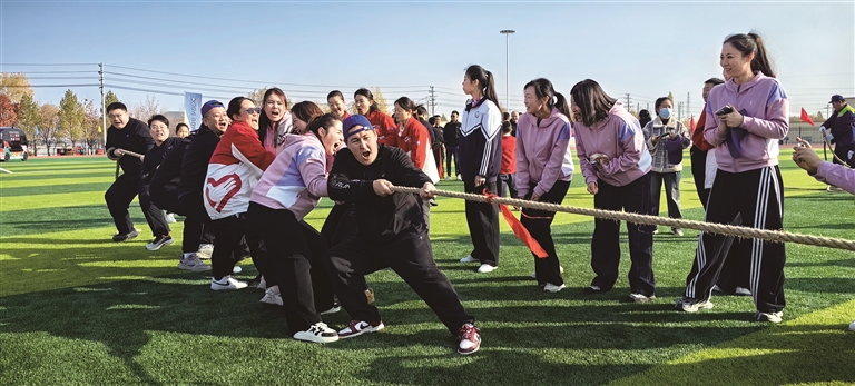 10月26日,昌吉国家高新区举办首届全民健身运动会,图为拔河比赛现场。□本报记者 荷苒·马汗摄