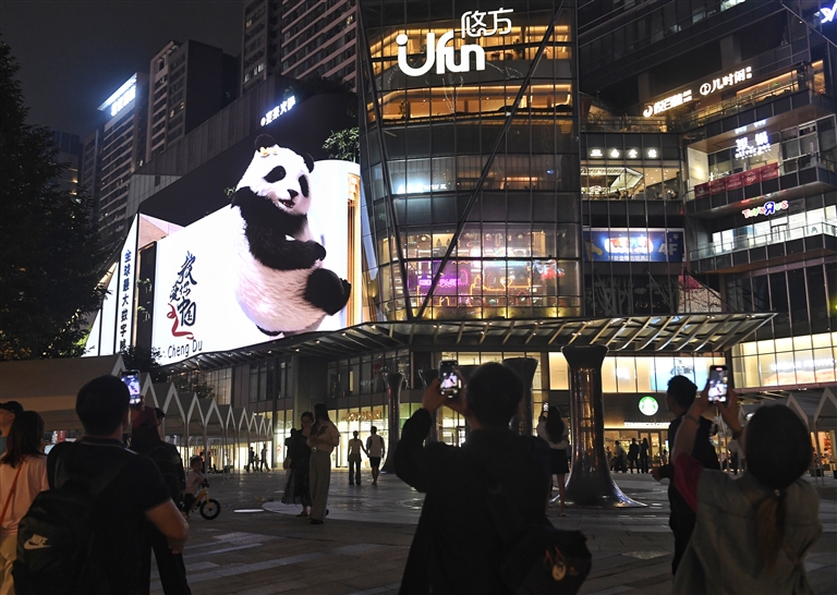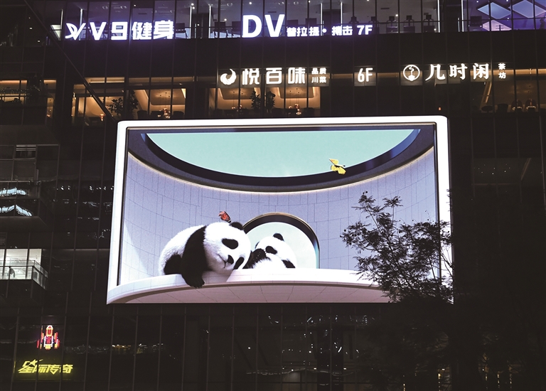 10月14日拍摄的裸眼3D数字熊猫。