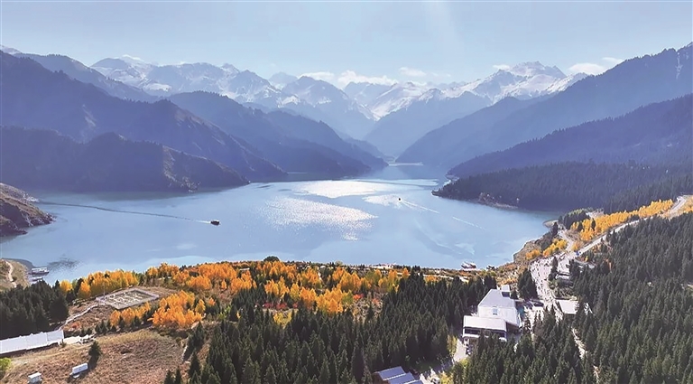俯瞰天山天池景区。□李佳俊摄