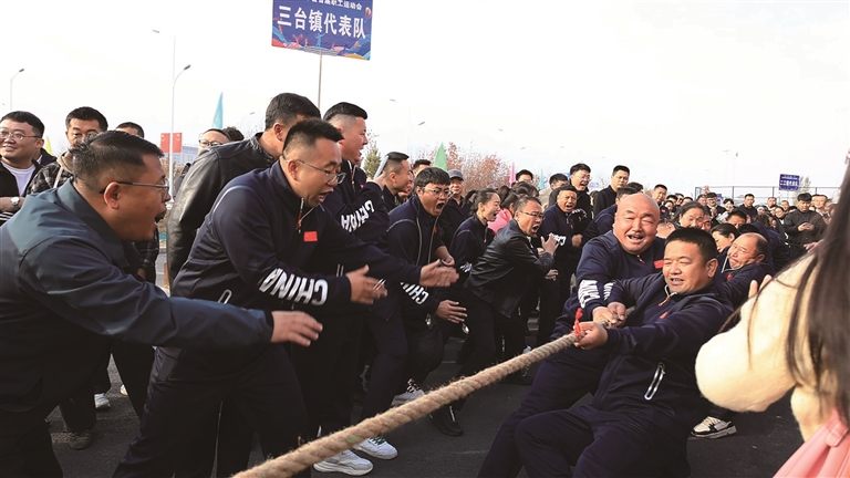 近日,吉木萨尔县举办首届职工运动会。图为拔河比赛现场。□叶 钰摄