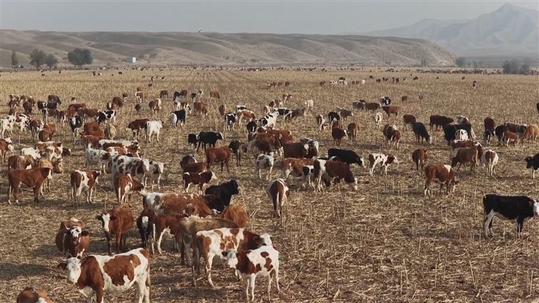 本报讯 通讯员瓦力斯江·乌马尔江、卡提合报道:近日,在玛纳斯县旱卡子滩乡石灰窑子村,牧民阿德力汗·阿帕海将自家的15头牛从秋季草场赶进村里的玉米地中放养。“以前草料不够,每个月买饲料要花3000块钱。现在村里免费提供玉米地放牧,草料质量好,牛也长得壮实,真是太好了。”他高兴地说。