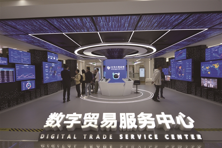 日前,浙江省金华市义乌市第六代市场——全球数贸中心开市营业,标志着义乌开启了从传统贸易模式向数字贸易生态跃升的新进程。全球数贸中心的3700多家新商户靠着稳定的跨境网络,与全球客商实时沟通、洽谈生意。该中心部署了万兆光网、跨境数据传输通道等数字新基建,建筑面积125万平方米,布局有市场、商务写字楼、商业街区、公寓和数贸港等五大功能板块。