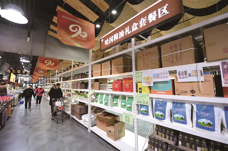 11月10日,在位于西安浐灞国际港的爱菊健康生活体验馆,消费者挑选哈萨克斯坦粮油产品。
